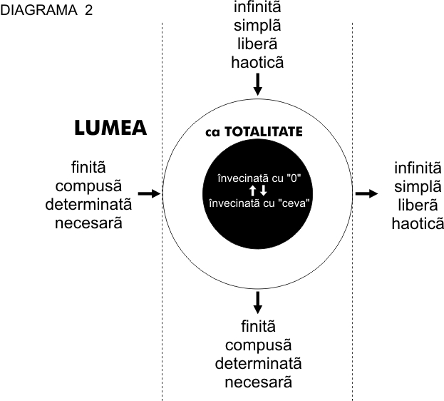 Dacă în prima diagramă aceste două planuri apăreau confundate şi rezultatul fiecărui demers sfârşea într-o contrazicere flagrantă a premisei, acum este necesară o nouă diagramă în care să se vadă că sunt de fapt două planuri „paralele”, care comunică între ele prin intermediul conceptului totalităţii, ceea ce face posibiă o transgresare a concluziei, întotdeauna, în celălalt plan, simetric celui în care a fost pusă premisa.
