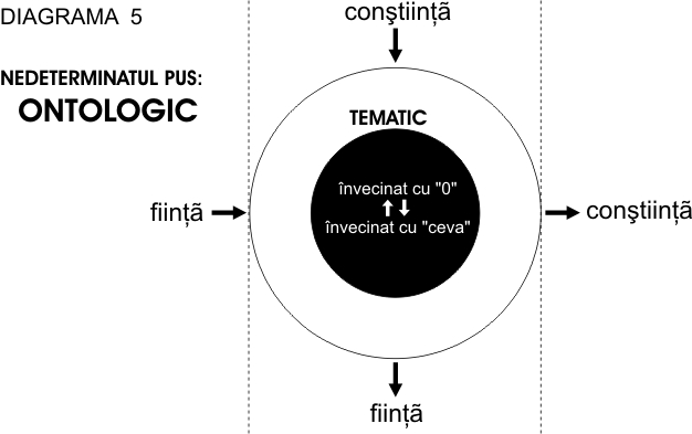 În centrul tematic este, aşadar, nedeterminatul, iar fiinţa şi conştiinţa apar ca două determinaţii sincategorematice ale sale (nedeterminatul ca fiinţă este conştiinţă, şi invers…), izvorul antinomiei fiind dubla punere a nedeterminatului, tematică şi ontologică – adică în două ipostaze echivalente ale sale: ca absenţă absolută (nici, nici – în punerea parmenideană) şi ca prezenţă absolută, ca schematism pur (şi, şi – în punerea kantiană).